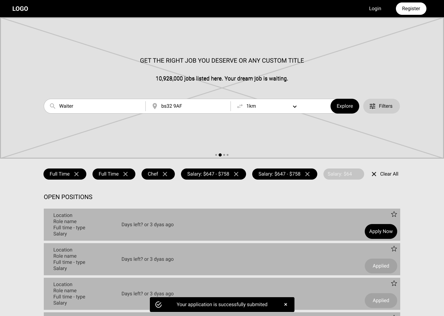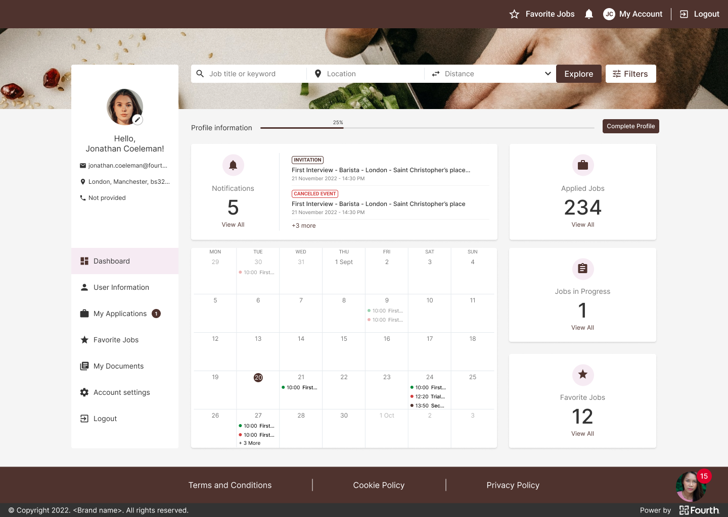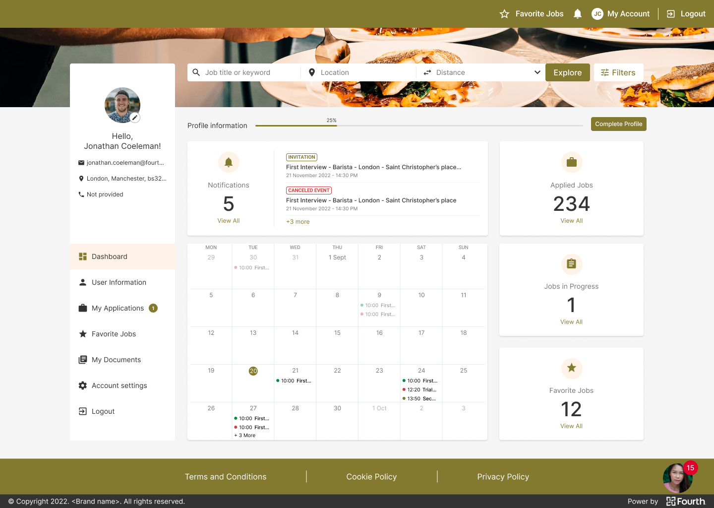 Kate is an experienced Chef and busy mom of two who needs to quickly find a new job at the nearest restaurant in the candidate portal because she is limited of time.