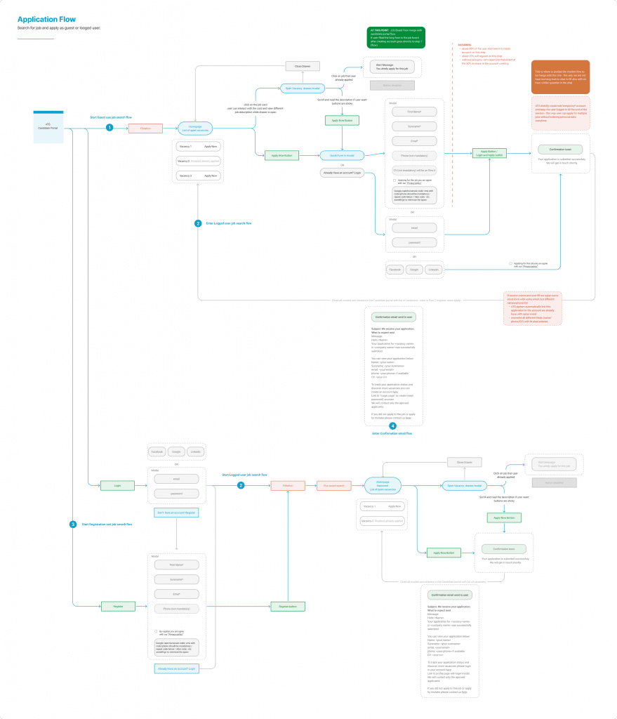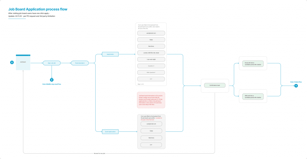 We have candidates coming directly from the candidate portal, we have some coming from third-party job boards, and also those coming from the client website through the Recruitment Assistant (chatbot), which is also part of the big picture of this project. And they should all have similar experiences with the ATS.