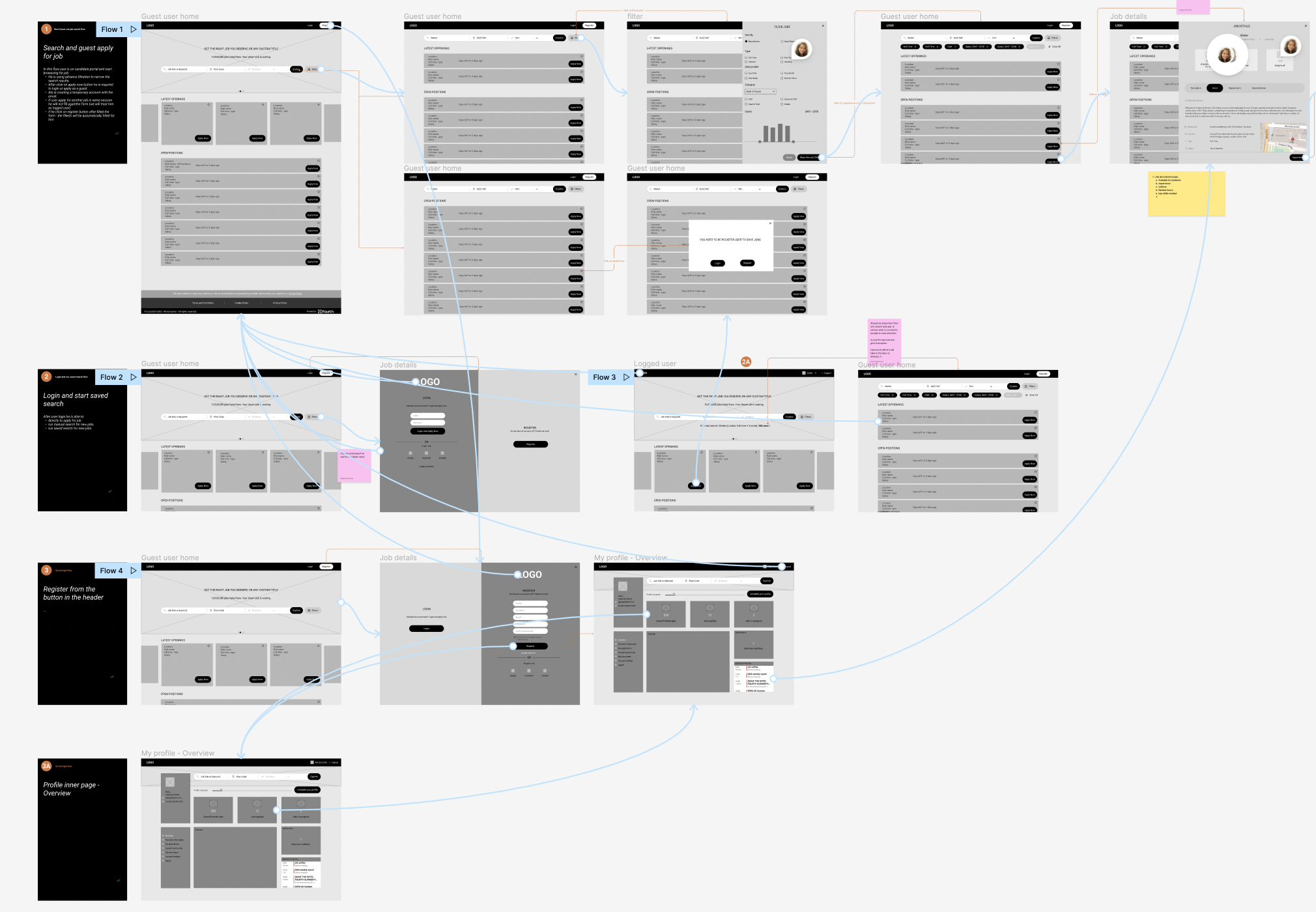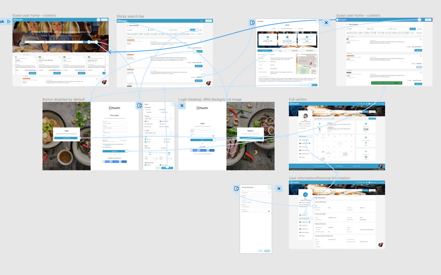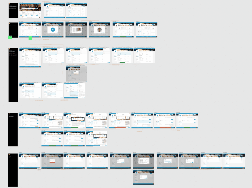 Using the complete set of digital wireframes, I created a low-fidelity prototype. I covered a few main flows – users apply for the job, users register or log in and check their application status, users upload documents and resumes in their profile. All these flows were connected to a prototype that was used for a usability study.