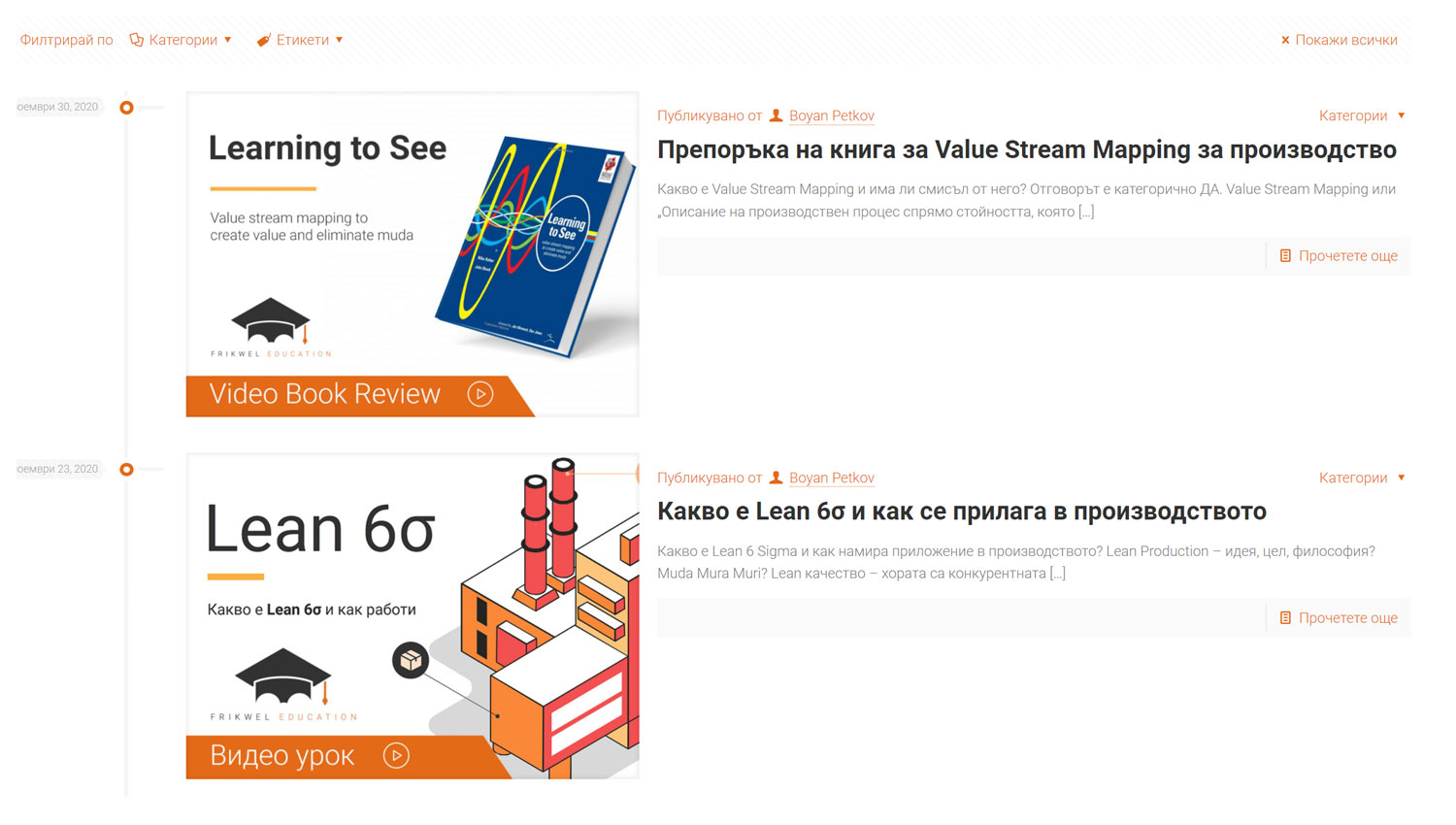 Each educational video was present in the website blog post. The graphics, text presenting and blog structure should be design i a way that the user could read and follow it from top to the end.