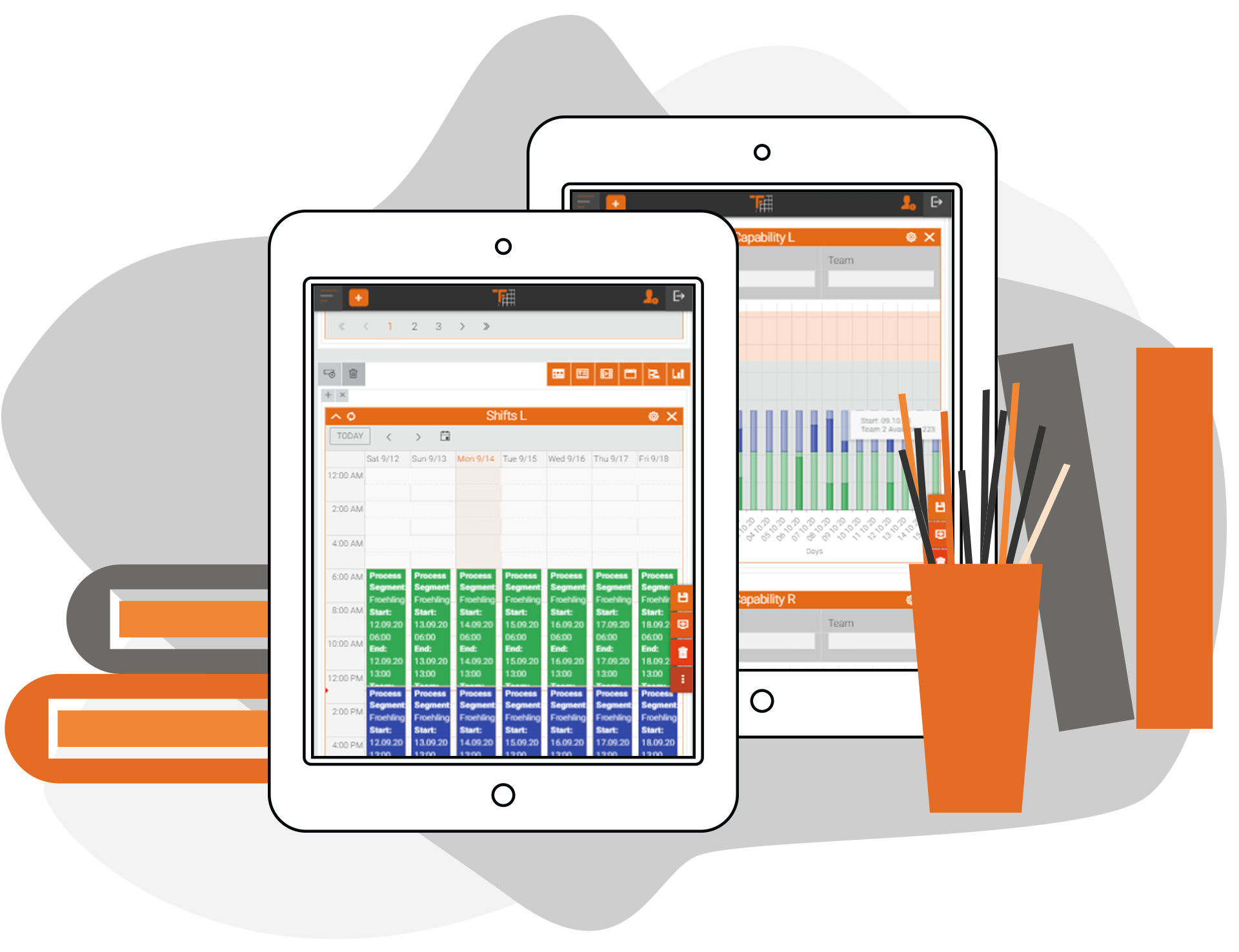 The application should be able to provide powerful widgets such as tables, text editor, media player, scheduler, gantt, charts.