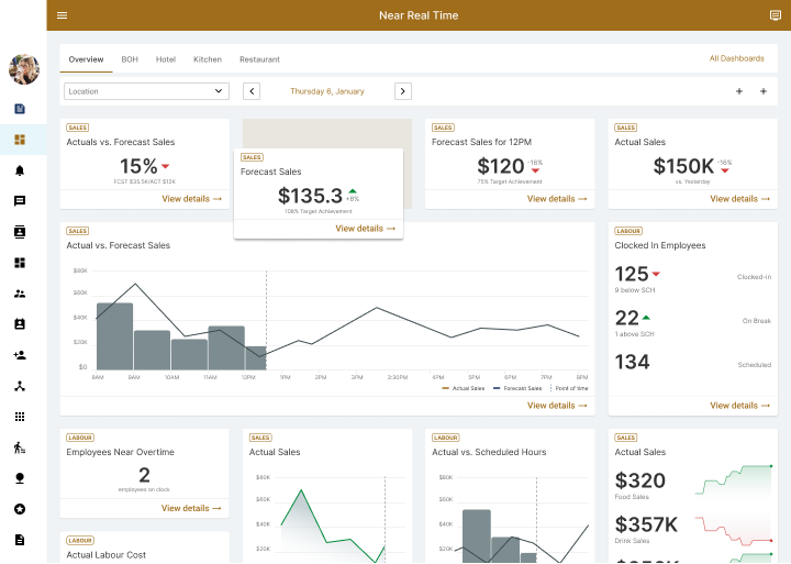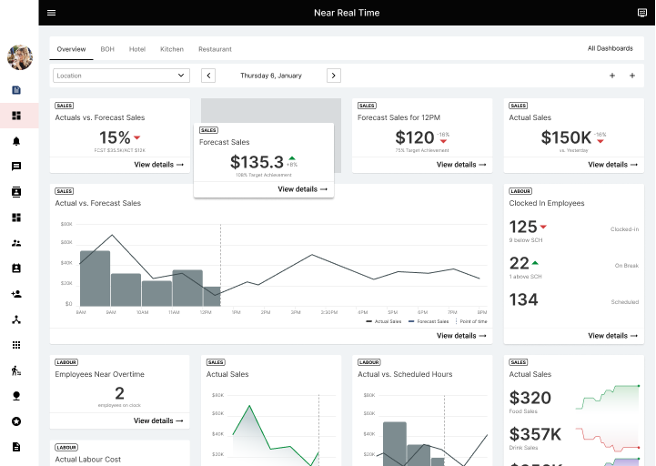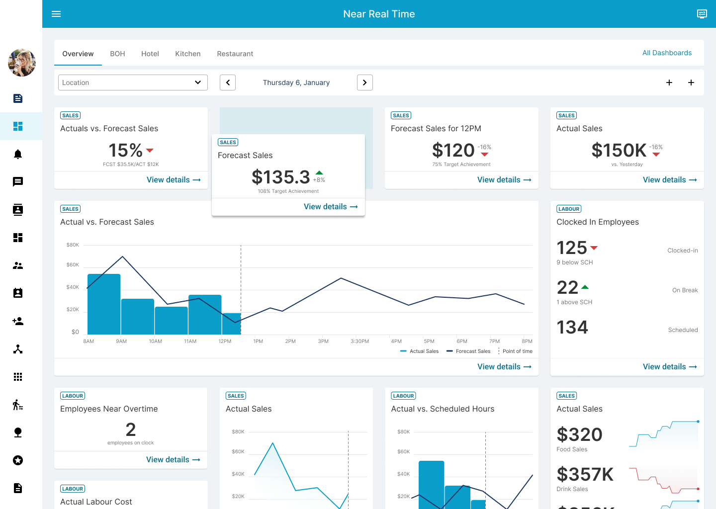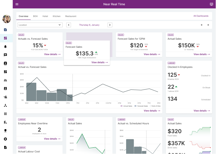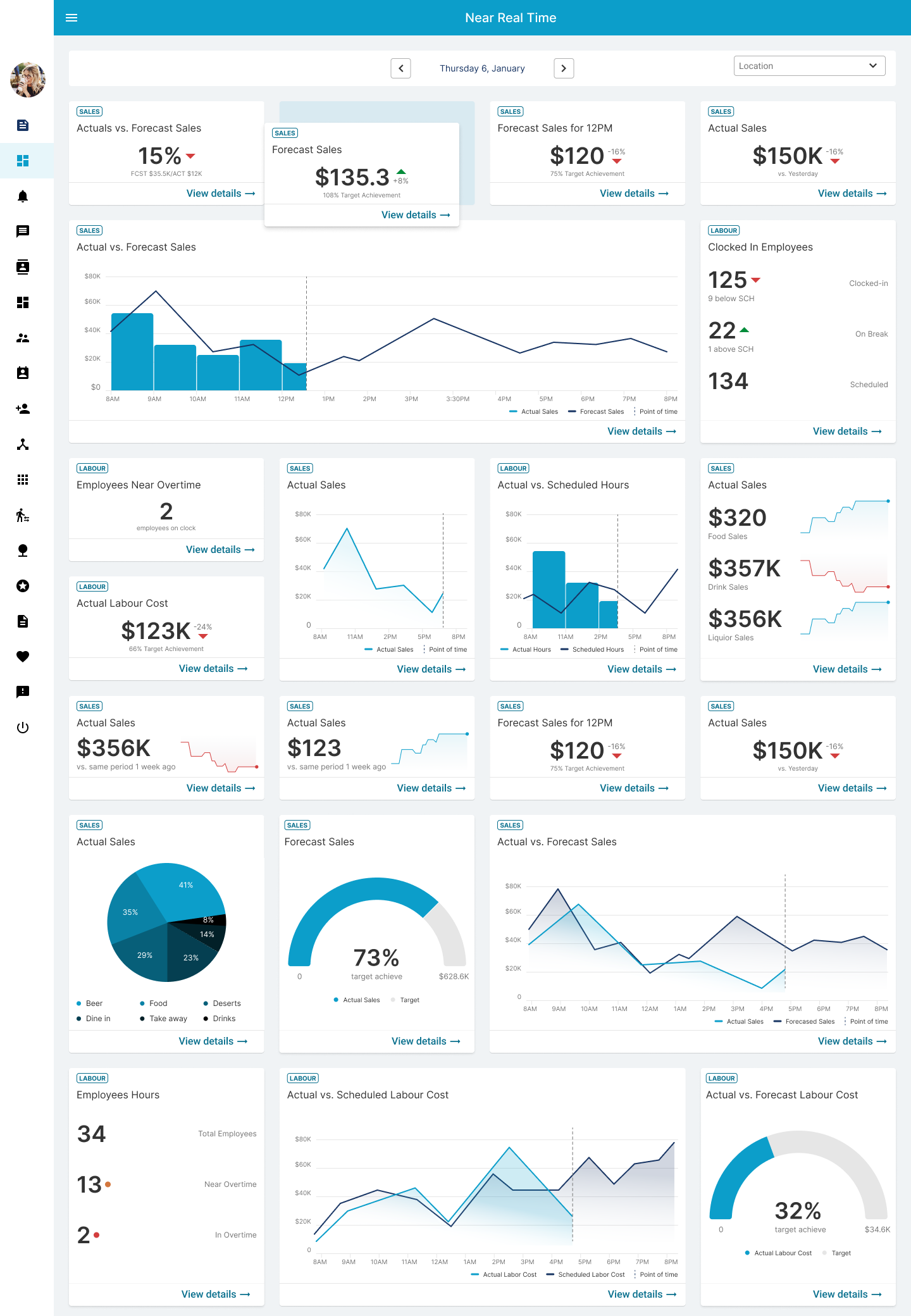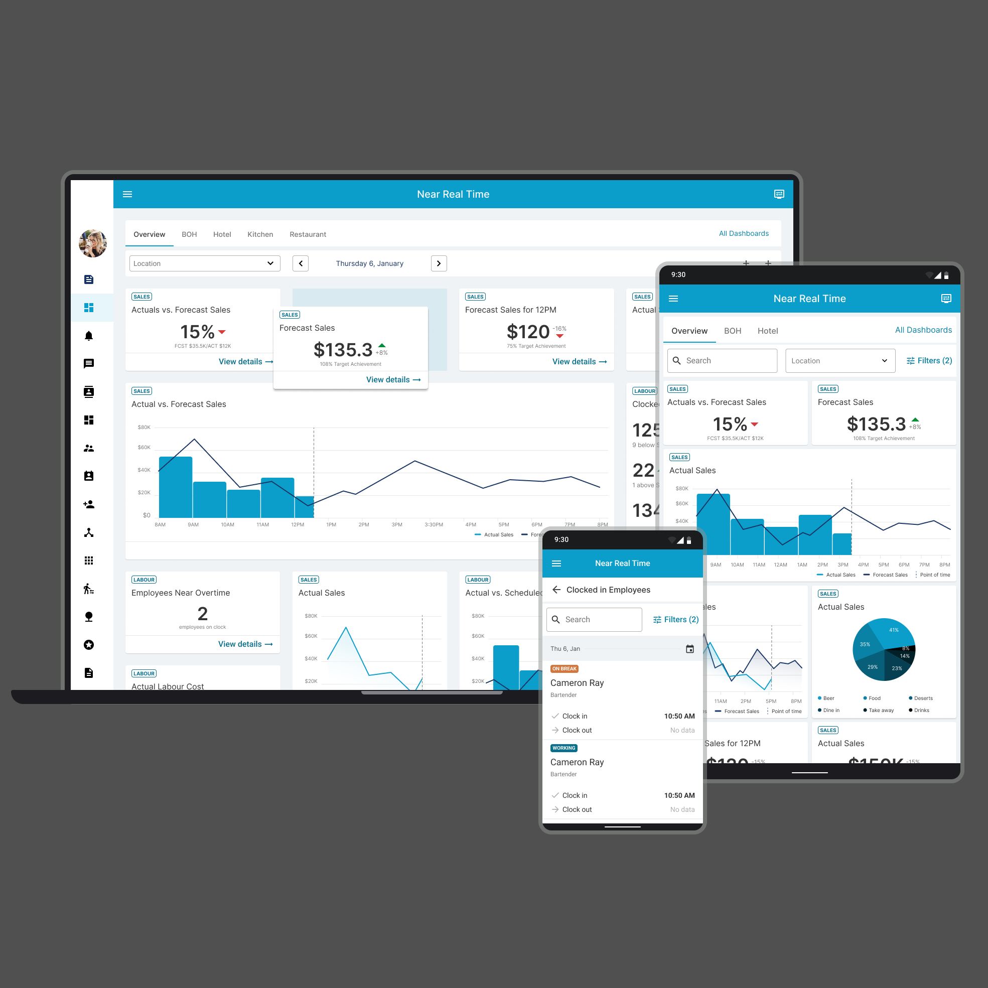 Managers need real-time data to make informed decisions (ex. to call out workers to minimise losses), but most of them use separate applications for scheduling, inventory and/or clock in, with no collaboration or metrics between them. Manager need to go over more than one appliciation to decide what action they need to take. Also different hierarchical levels may have limited information and applications access, but still need key numbers to make decisions right the way.