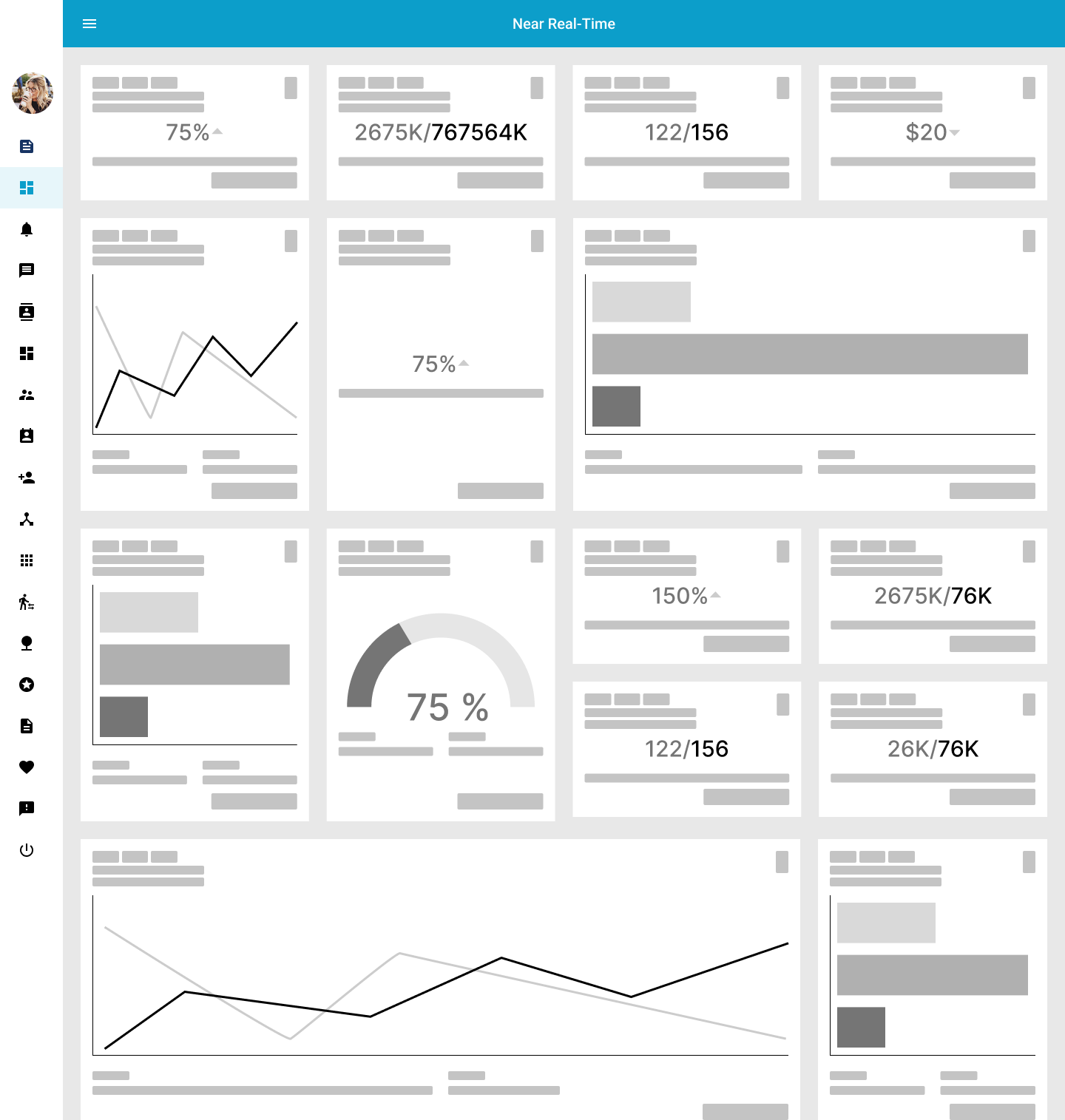 Once the layout structure and rules were established, we began compiling metrics and real data. One of the most important points for managers was the ability to customize their dashboard, and we gave them that option with a drag-and-drop functionality.