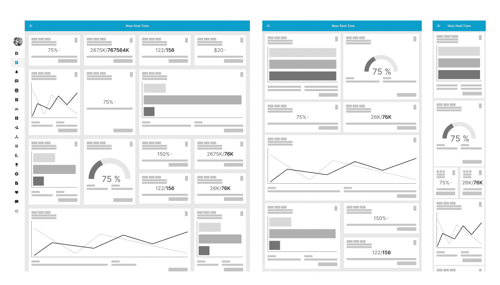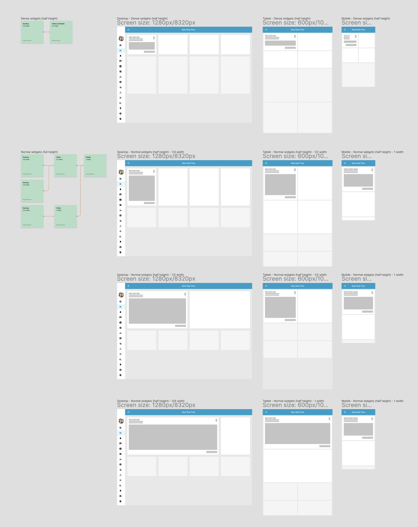 The first iteration of the design begins by examining the layout and how components will react and resize depending on widget type and device resolution. This was used as a starting point for developing the template components and the mandatory parts of the layout.