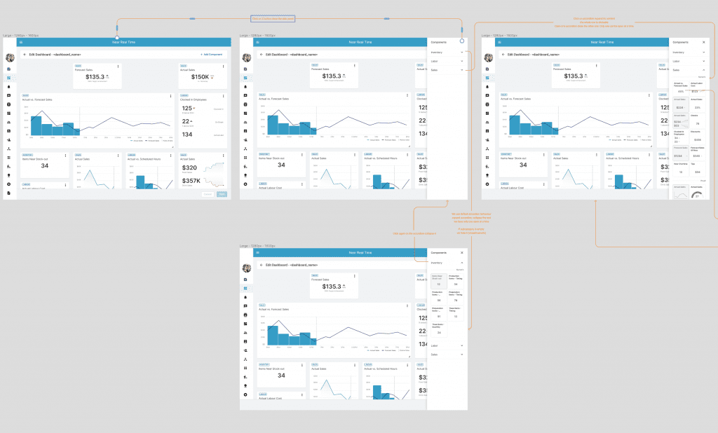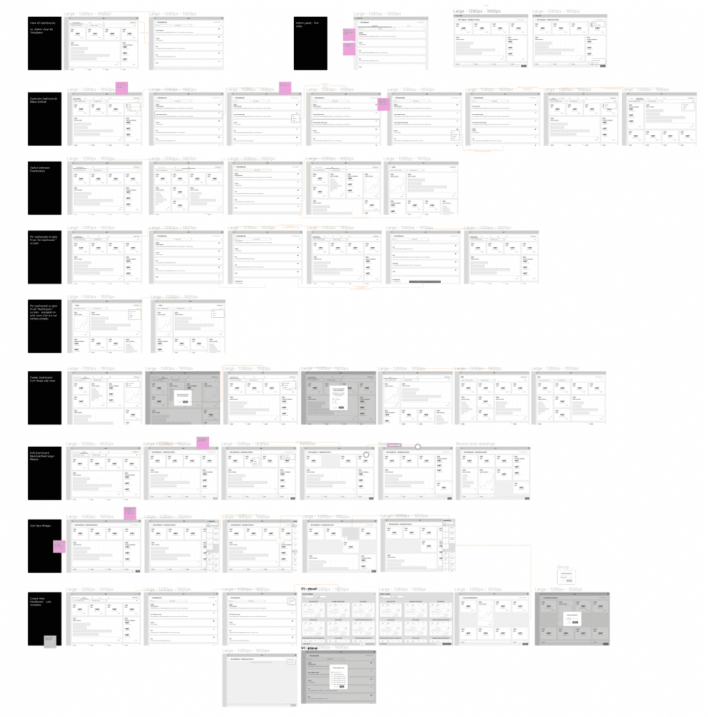 The next step was to create digital wireframes that covered all of the user’s main flows in creating and customizing the dashboard. These wireframes were linked together and a prototype was created.